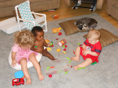 | I got out these counting food cans for Raelynn and the other two kids loved it as well! It was adorable they were ALL playing together!! |